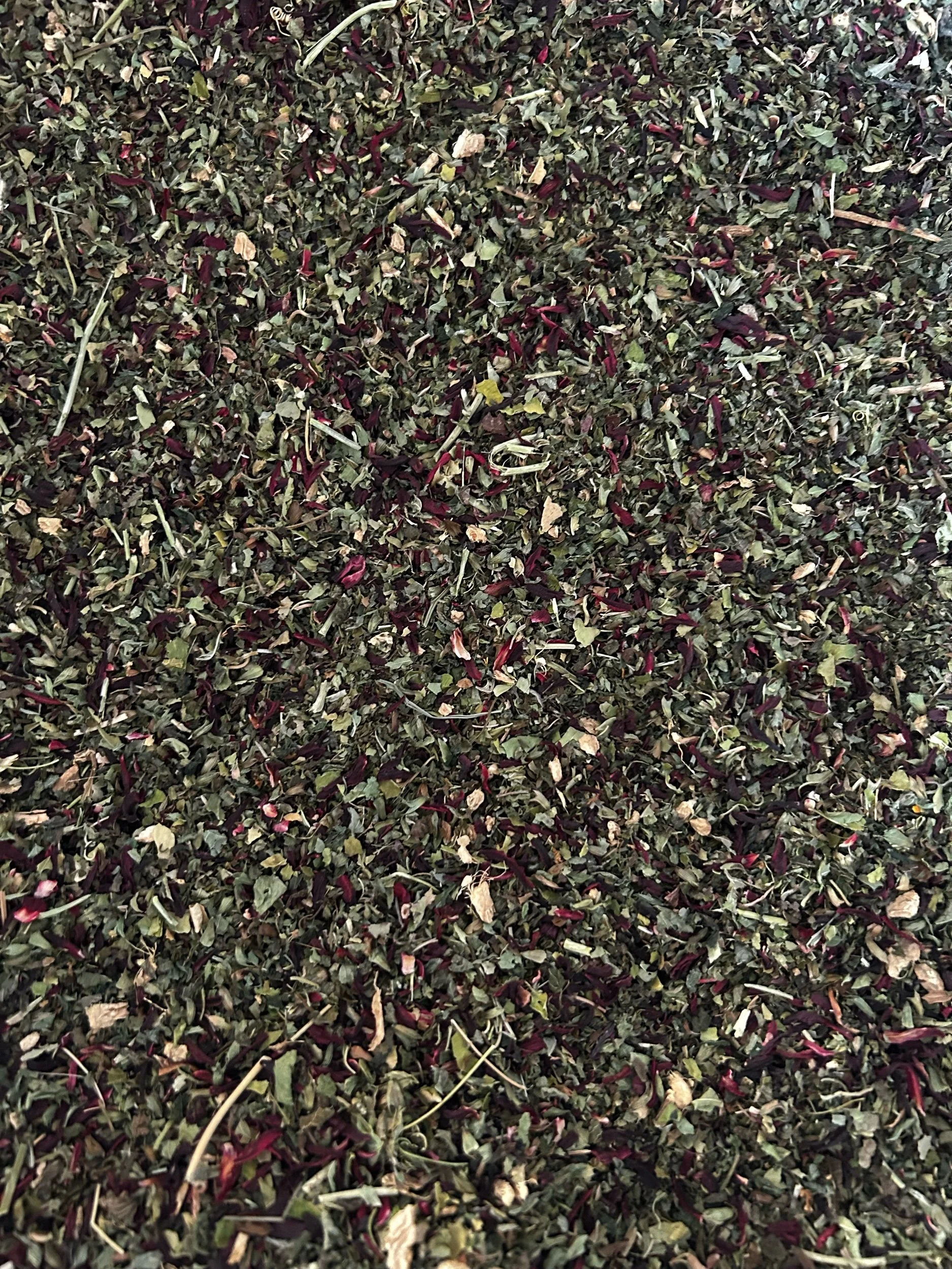 Built with passionflower to take the edge off, lemon balm to lift and steady the mood, and spearmint + ginger to keep things light, clear, and moving. Hibiscus adds a subtle brightness, while stinging nettle supports the body underneath it all.
